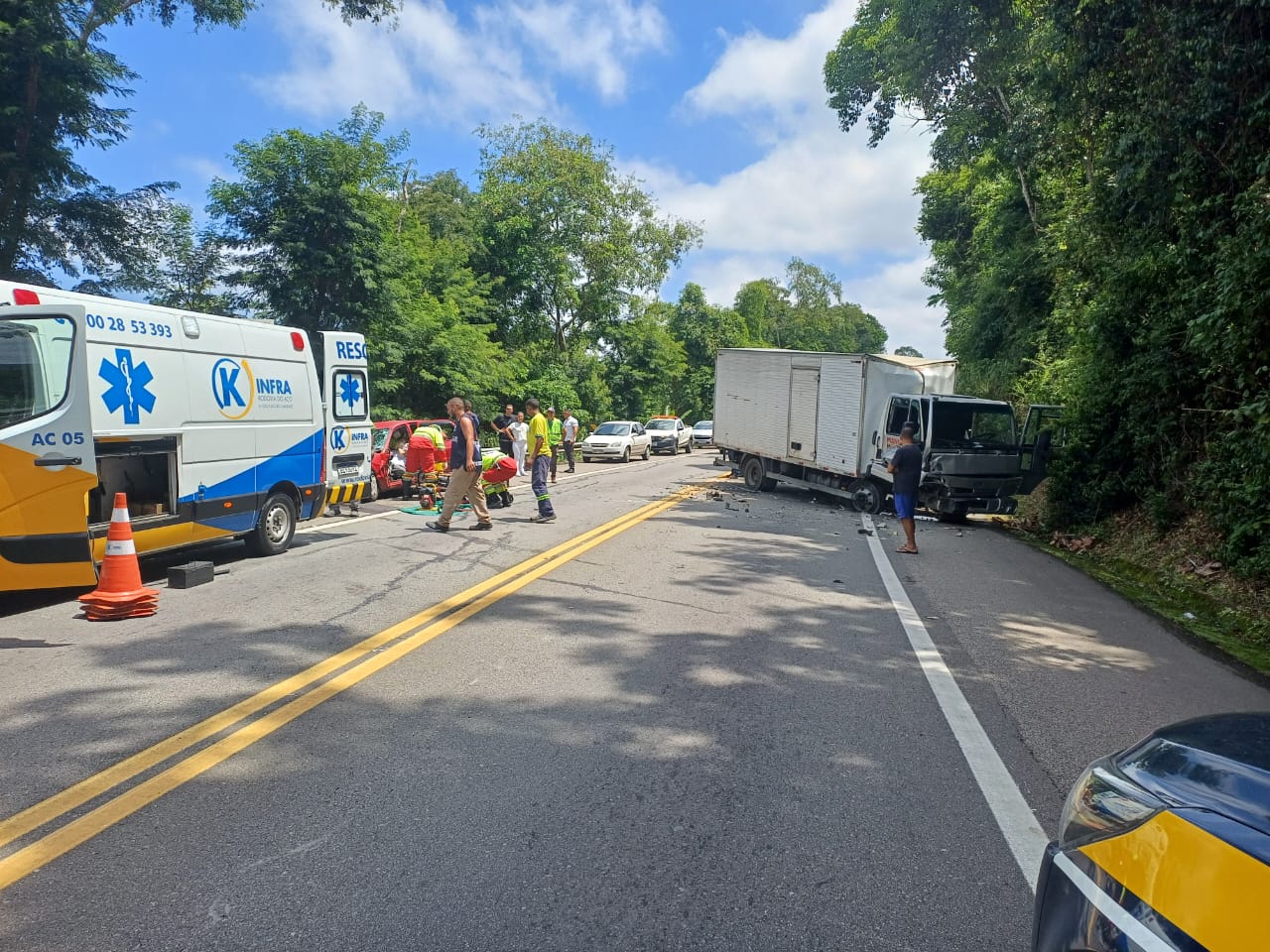 As informações foram passadas pela Polícia Rodoviária Federal: O carro bateu frontalmente com caminhão que vinha no sentido contrário da rodovia. Ela foi levada para o Hospital Unimed em Volta Redonda com ferimentos leves