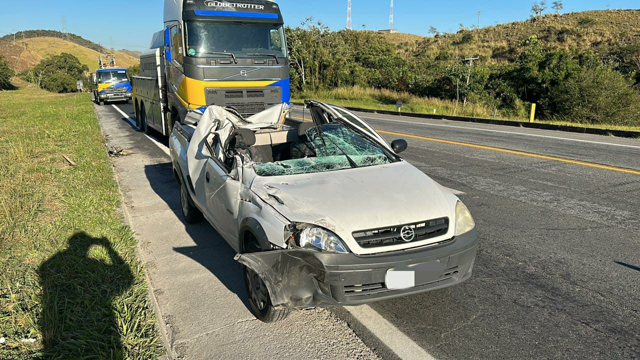 Um motorista de 44 anos ficou ferido após bater com seu veículo (Montana) na traseira de um caminhão na BR-393, em Vassouras, próximo ao restaurante Beira Chão. Ele seguia pela rodovia quando colidiu com veículo de carga. Toda a frente do carro ficou destruída.