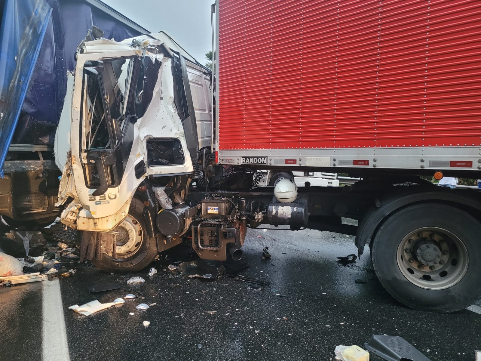 Segundo os agentes, o condutor do carro rodou, bateu na mureta e rodou na pista. Uma carreta que seguia logo atrás dentou desviar e acabou dando um “L”. O outro veículo de carga bateu na traseira e acabou ficando preso nas ferragens.