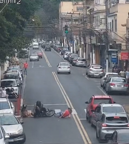O acidente foi filmado pelas câmeras da prefeitura. O atropelador é mototáxi e a passageira também sofreu a queda com o impacto. Pelas imagens, as vítimas não tiveram ferimentos graves. Não há informações se foram para o hospital.