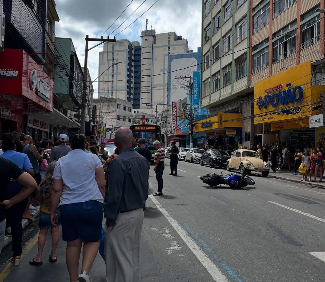 Uma moto atropelou uma mulher na tarde desta quarta-feira (18) em Barra Mansa. O caso ocorreu na Avenida Joaquim Leite, no Centro da cidade.