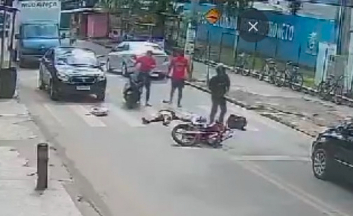 Câmeras de segurança flagraram o momento em que a vítima foi atingida pela motocicleta. No vídeo, é possível ver que um carro para, a mulher começa a travessia e, segundos depois, é atropelada.