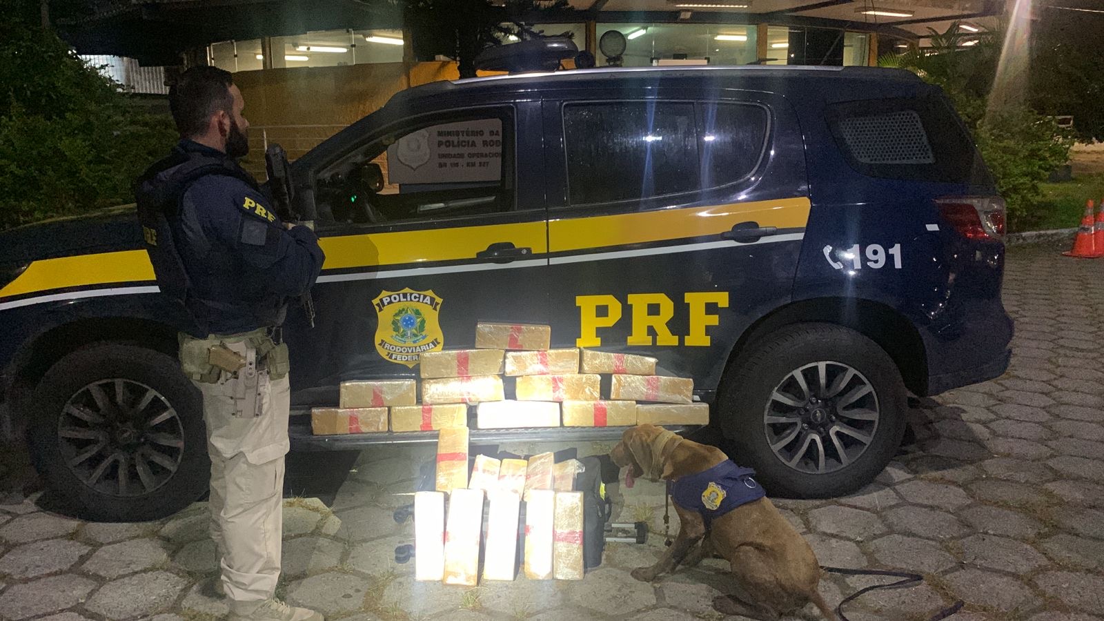 Uma jovem de 23 anos foi presa nesta quarta-feira (27) com 23 tabletes de maconha na Via Dutra, em Piraí. Ela estava no ônibus da linha São Paulo-Vitória quando foi abordado pos policiais rodoviários federais. Com a ajuda de cão farejador, os agentes conseguiram localizar os entorpecentes.