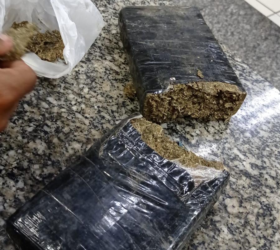 Embaixo de um dos bancos do veículo, os policiais encontraram dois tabletes de maconha (900 gramas). A suspeita, que já é conhecida dos agentes por participar do tráfico local, foi com os policiais até a sua residência, mas nada de ilícito foi encontrado.