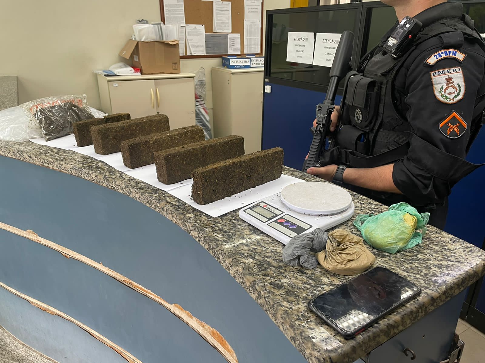 Dentro da mochila, foram apreendidos seis tabletes de maconha, duas sacolas contendo cocaína, uma balança de precisão e mil pinos vazios, além de um celular. Diante dos fatos, ela foi levada para a delegacia de Barra Mansa (90º DP), onde o caso foi registrado.