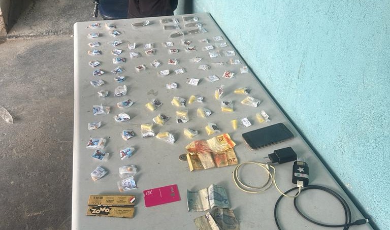 Foram apreendidos com as suspeitas 55 pedras de crack, 23 pinos de cocaína, dois celulares e R$ 45.