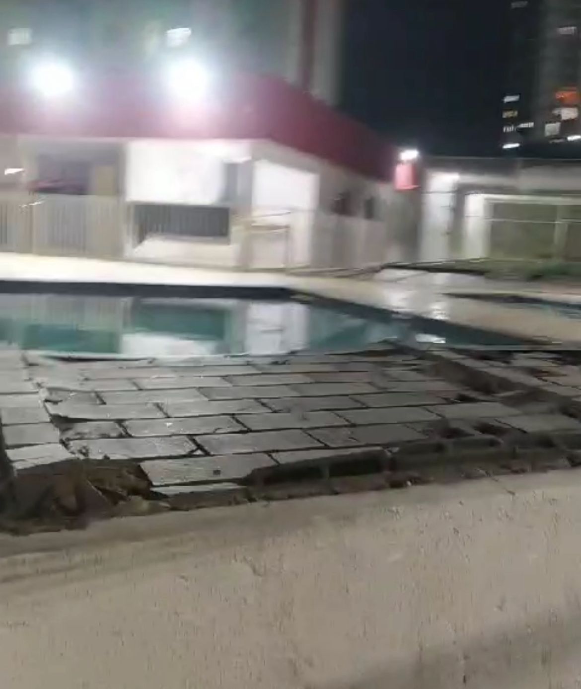 Um morador fez uma filmagem (veja abaixo) de como ficou destruído e comentou: “Que qualidade de muro”, ironizou o morador. Outra moradora sobre o perigo do ocorrido. “Se fosse de dia, poderia machucar alguém”. O muro divide a área das piscinas com a Rodovia do Contorno.