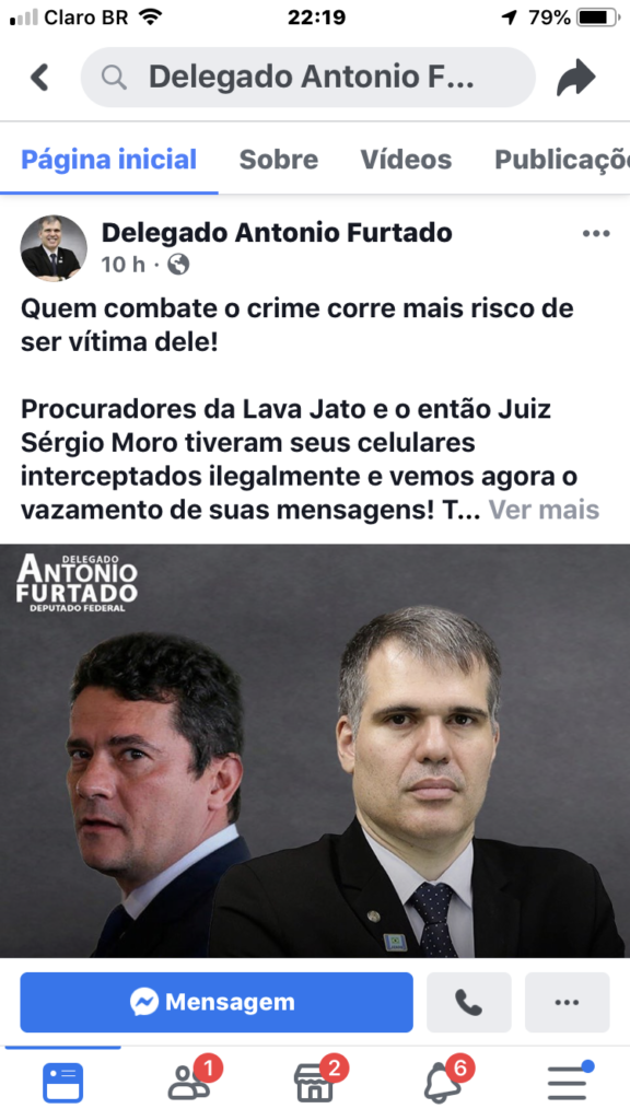 O deputado federal Antônio Furtado (PSL), de Volta Redonda, saiu em defesa do ministro da Justiça, Sérgio Moro. Em suas redes sociais, o parlamentar disse que “quem combate o crime corre mais risco de ser vítima dele”.