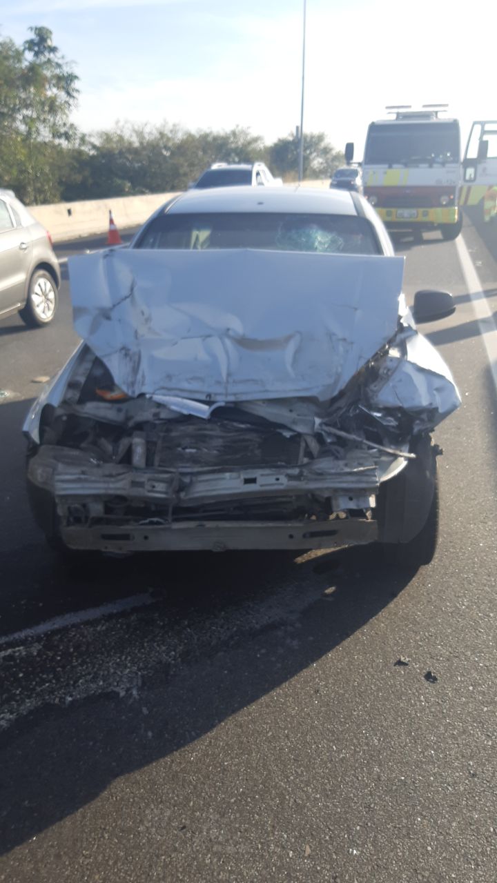 O acidente ocorreu na tarde de sábado (31), quando o Prisma não freou a tempo e acabou colidindo na traseira de um furgão Peugeot Boxer.
