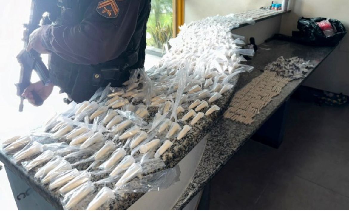 Segundo os policiais, o jovem foi além e indicou o local – na área de mata – onde havia mais drogas. Foram encontrados mais 1.037 pinos de cocaína e outros 1,5 mil pinos vazios.