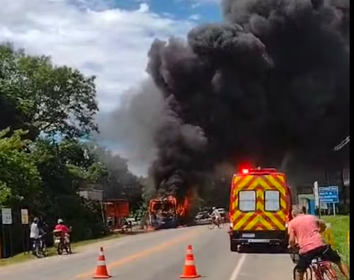 Segundo o Corpo de Bombeiros, ninguém ficou ferido. Em imagens que circulam pelas redes sociais é possível ver o fogo intenso que acometeu o veículo, com uma densa fumaça preta.