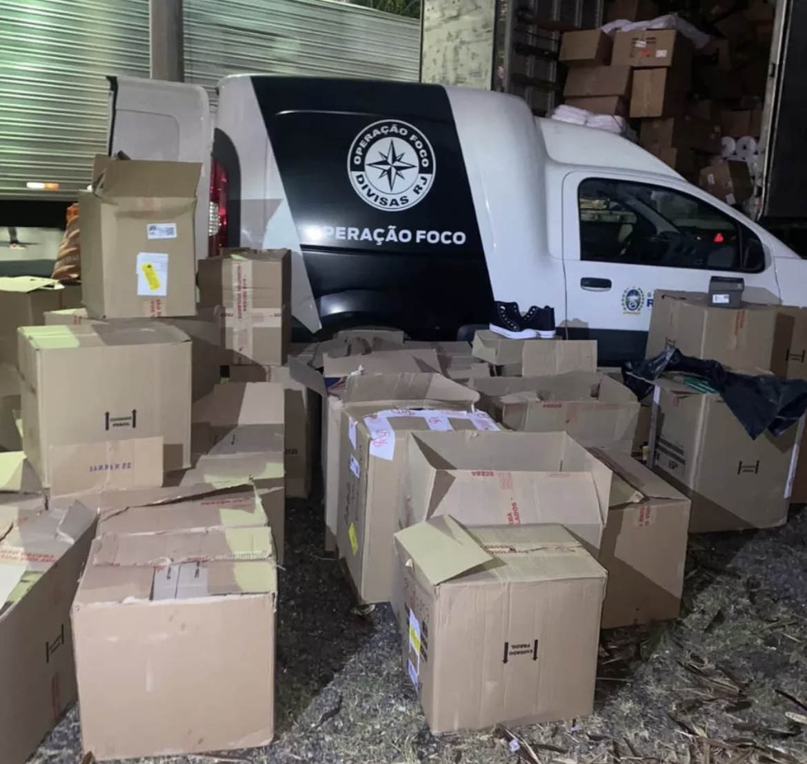 Mais de 600 pares de tênis falsificados foram apreendidos na quinta-feira (11), na BR-040, em Levy Gasparian (RJ). Os calçados estavam em um caminhão, abordado durante uma fiscalização da Operação Foco.