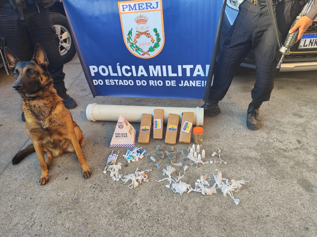 Durante a incursão na comunidade, os policiais localizaram e apreenderam os seguintes materiais entorpecentes: