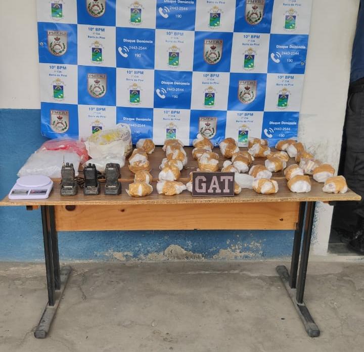 Na mesma ação, segundo a PM, foram apreendidos três rádios de comunicação, uma balança e três bolsas contendo pinos para a venda de cocaína. Os traficantes conseguiram escapar do cerco policial e não houve prisões.