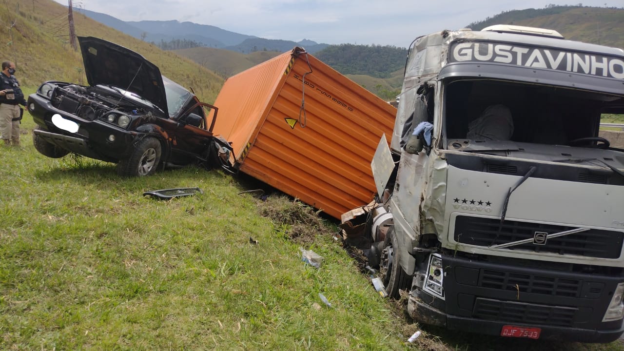 Segundo os agentes, um contêiner transportado por carreta tombou atingindo uma caminhonete. Todas as vítimas estavam no veículo de passeio e foram levadas para o Hospital de Emergência de Resende. O estado de saúde deles não foi divulgado.
