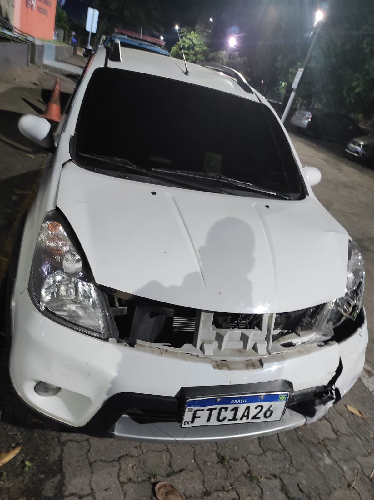 Assim começou a perseguição até o veículo bater numa mureta no mesmo bairro. Os dois suspeitos conseguiram fugir a pé.