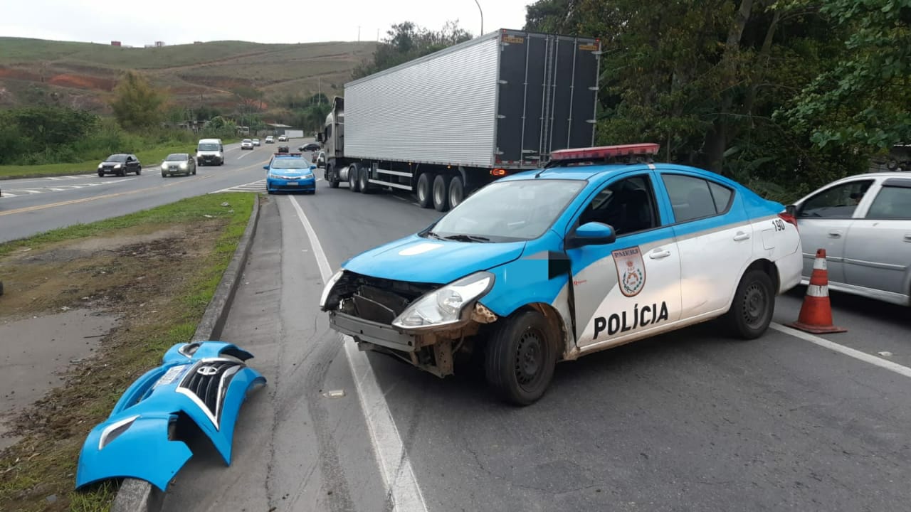 As informações são da Policia Rodoviária Federal. Os dois estavam em uma moto que se chocou com o meio-fio da calçada. A viatura da PM também bateu no meio-fio ao tentar desviar da moto. Os policiais não ficaram feridos.