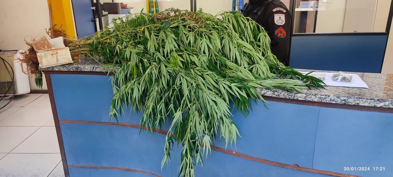 Eles foram abordados em frente a uma residência e, em seguida, os militares seguiram para o quintal do imóvel e encontraram a plantação de maconha. Eles também recuperaram dois tabletes pequeno da mesma droga.