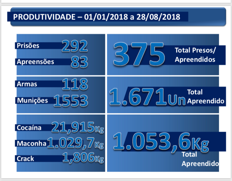 A estatística não está incluídos as apreensões e prisões realizadas pela Polícia Rodoviária Federal no trecho da Via Dutra.