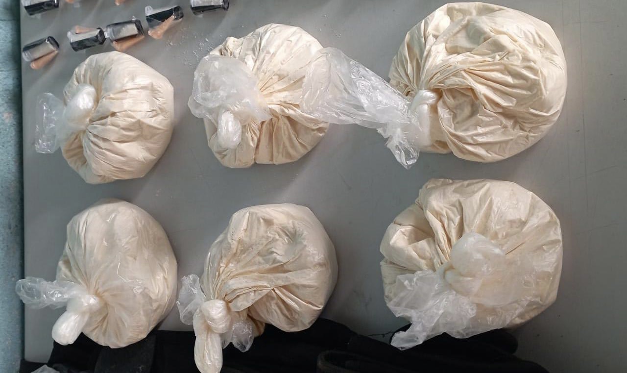 No local, havia seis sacolas com cocaína – num peso total de 1,3 quilo, além de 272 pinos de cocaína e material para embalagem dos entorpecentes.