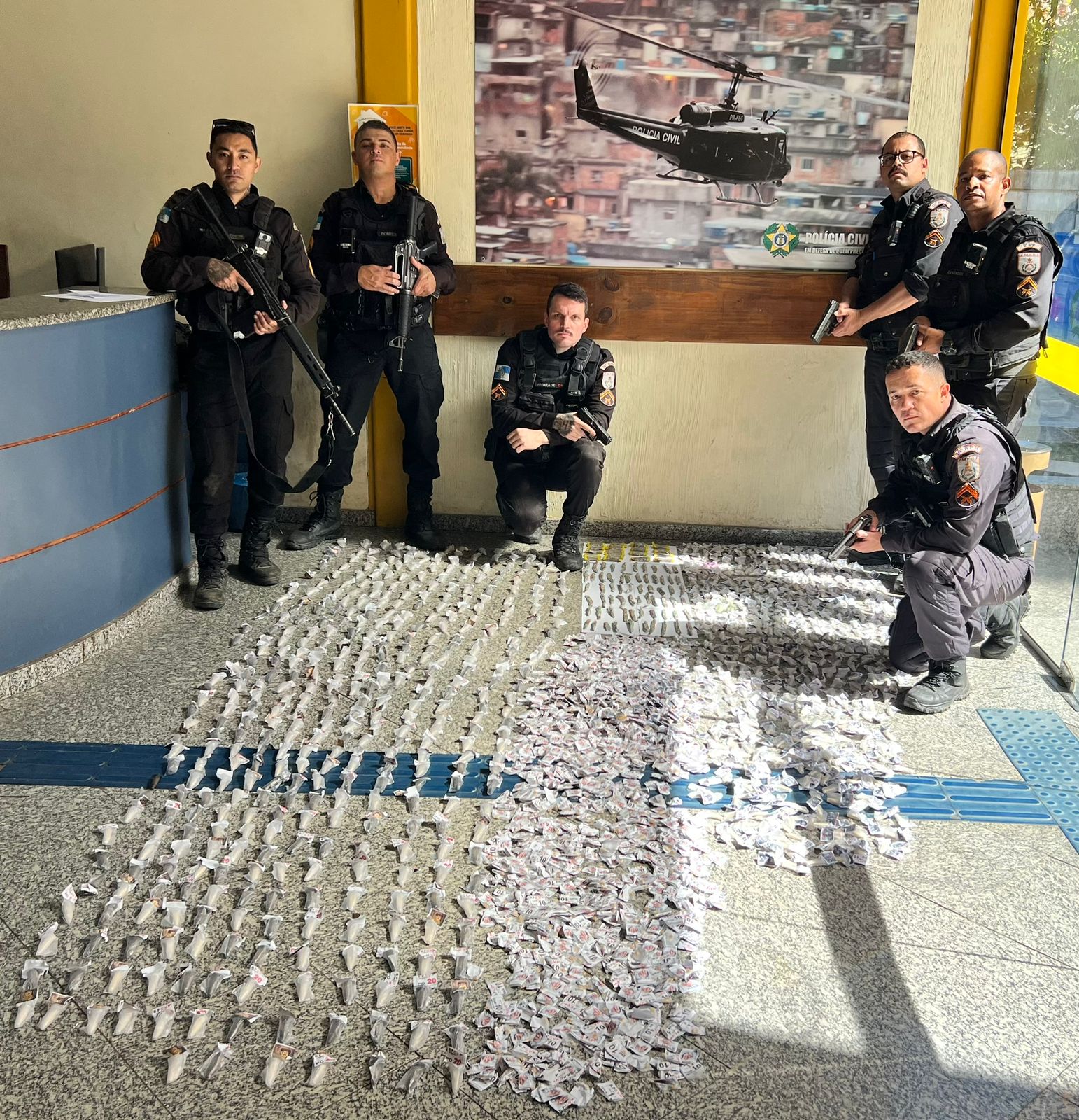 Chegando, os agentes confirmaram a informação e encontraram o suspeito, que seria responsável pela droga. Ao todo, num saco preto, havia 2.950 cápsulas de drogas – num valor estimado de R$ 41 mil, de acordo com as etiquetas que estavam nas cápsulas dos entorpecentes. O prejuízo foi do Comando Vermelho.
