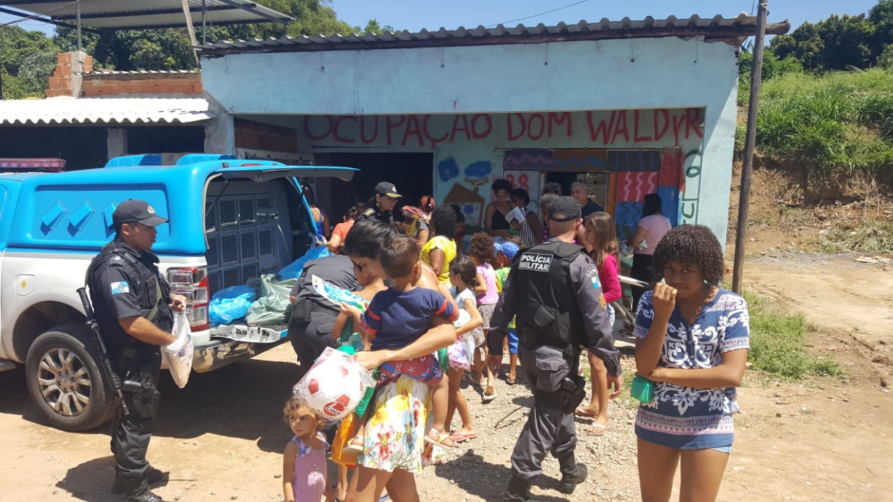 Detalhe: os brinquedos foram comprados pelos próprios policiais da corporação, num ato de solidariedade em uma das comunidades mais carentes da cidade.