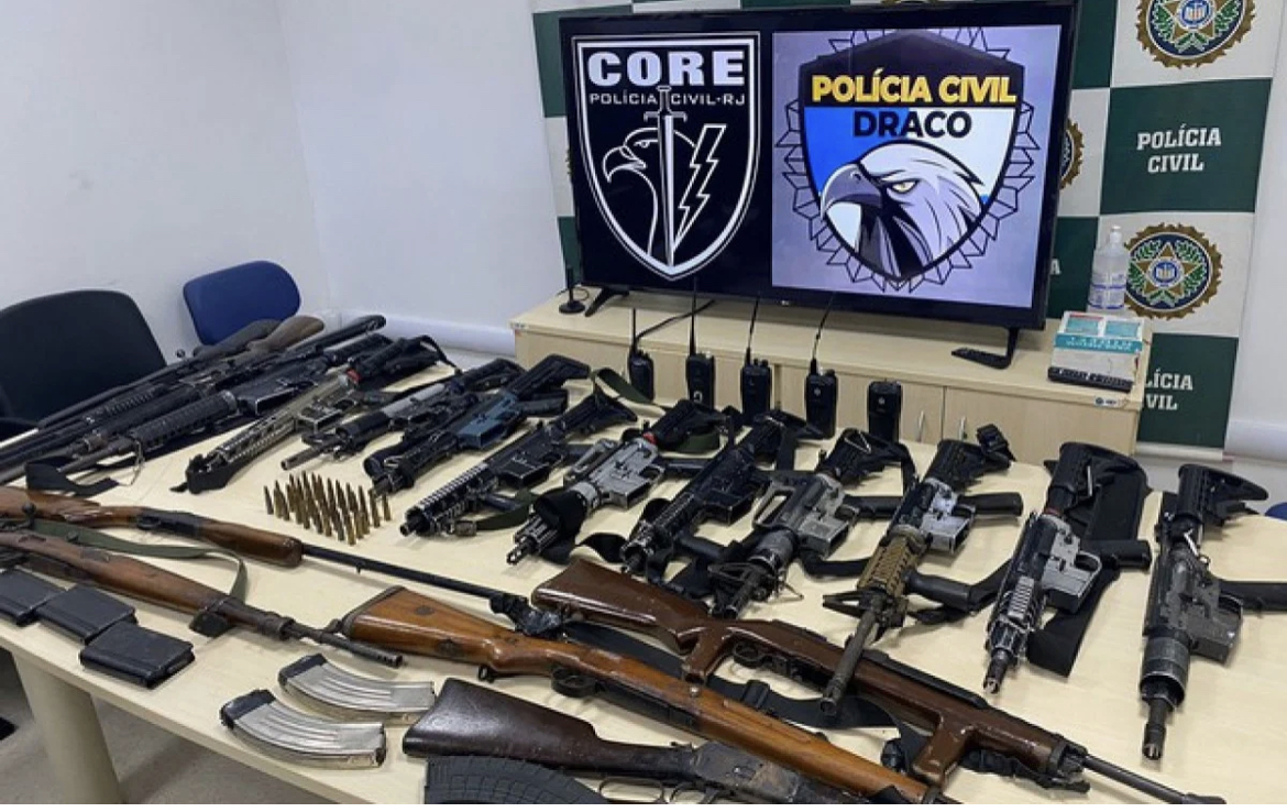 Policiais da Delegacia de Repressão a Ações Criminosas Organizadas (Draco-IE) e da Coordenadoria de Recursos Especiais (Core) apreenderam, nesta quinta-feira (25), 19 fuzis, carregadores, munições, rádio transmissor e automóvel em um depósito, em Nova Iguaçu, da milícia comandada por Danilo Dias Lima, conhecido como “Tandera”.