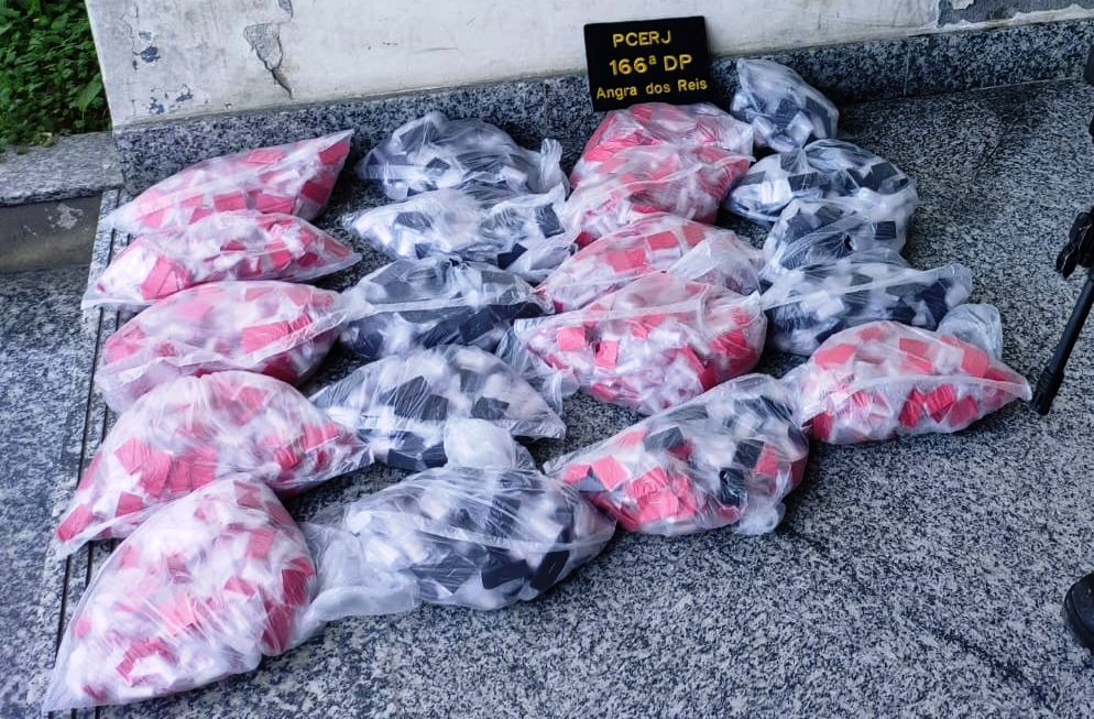As polícias Civil e Militar apreenderam 2.082 pinos de cocaína em Angra dos Reis. O caso ocorreu em um apartamento no bairro Banqueta.