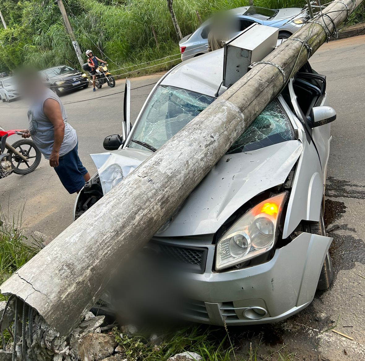 Um poste de energia elétrica tombou após um carro bater em sua estrutura em Volta Redonda. O caso ocorreu na tarde deste sábado (4) na avenida Francisco Crisóstomos Torres, no bairro Pinto da Serra.