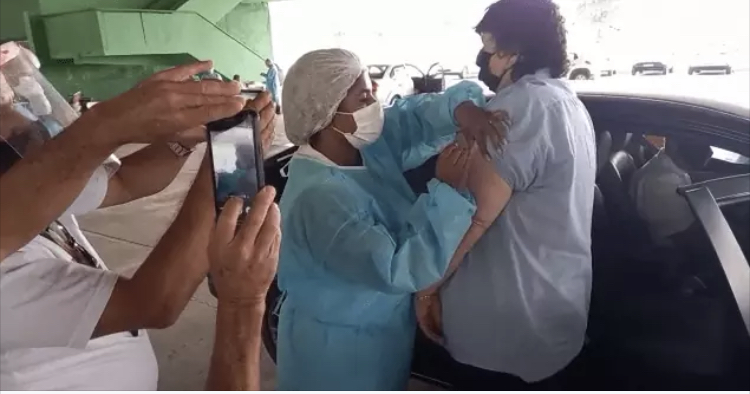 Neto foi imunizado na campanha de vacinação em drive-thru, realizado na Ilha São João.