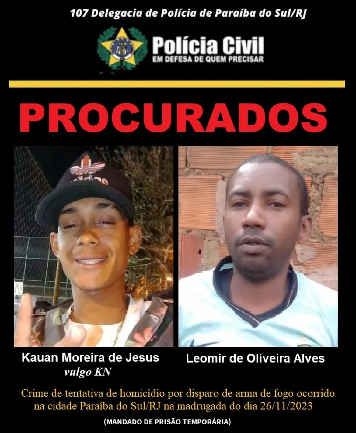 O crime aconteceu em novembro, no Centro. Segundo a Polícia Civil, na ocasião, Leomir e Kauan Moreira de Jesus, de 23 anos, tentaram matar um homem a tiros, mas a vítima conseguiu fugir do local sem ser atingida