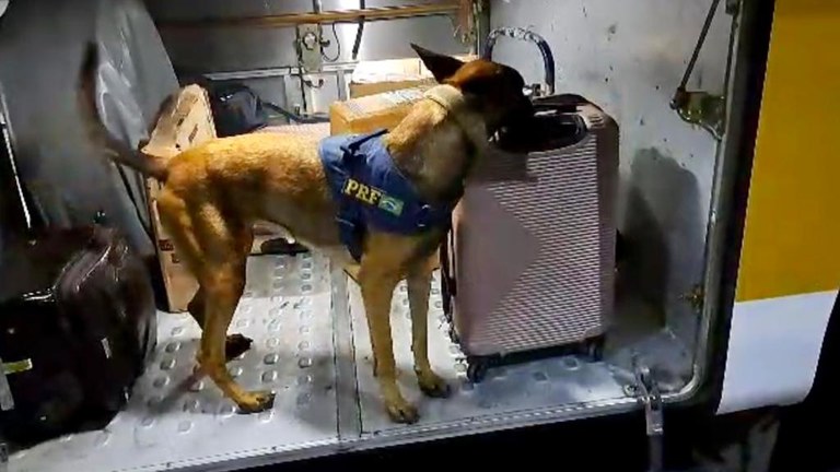 Na noite desta quinta-feira (22), policiais rodoviários federais e o Núcleo de Operações com Cães – NK9, em fiscalização a um ônibus na Rodovia Presidente Dutra, apreenderam aproximadamente 27 quilos de maconha dentro de uma mala. Uma pessoa foi presa.