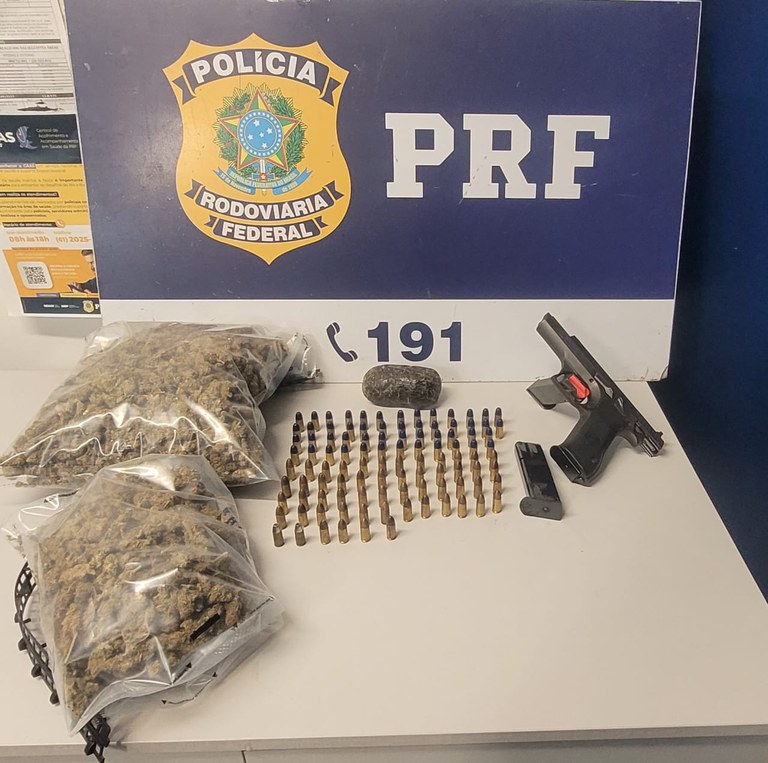 Na noite de quinta-feira (02), Policiais Rodoviários Federais apreenderam uma mochila em que havia uma arma, munições e drogas na altura do Km 223 da BR-116, região Sul Fluminense do Rio. O flagrante aconteceu em um ônibus.