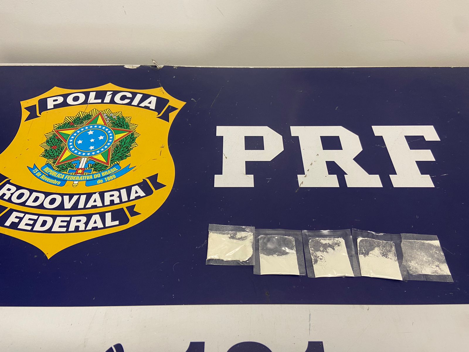 Porém, os agentes federais desconfiaram e fizeram uma revista no veiculos, onde foram encontrados cinco papelotes de cocaína.