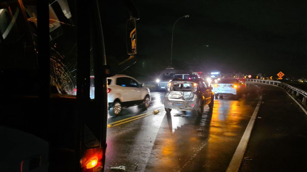 De acordo com a PRF, o acidente aconteceu, pois o condutor do ônibus não conseguiu parar a tempo, em virtude do trânsito, colidindo na traseira do Fiat Uno, onde estavam as duas mulheres. Esse veículo acabou sendo lançado até o terceiro veículo, um Nissan Sentra.