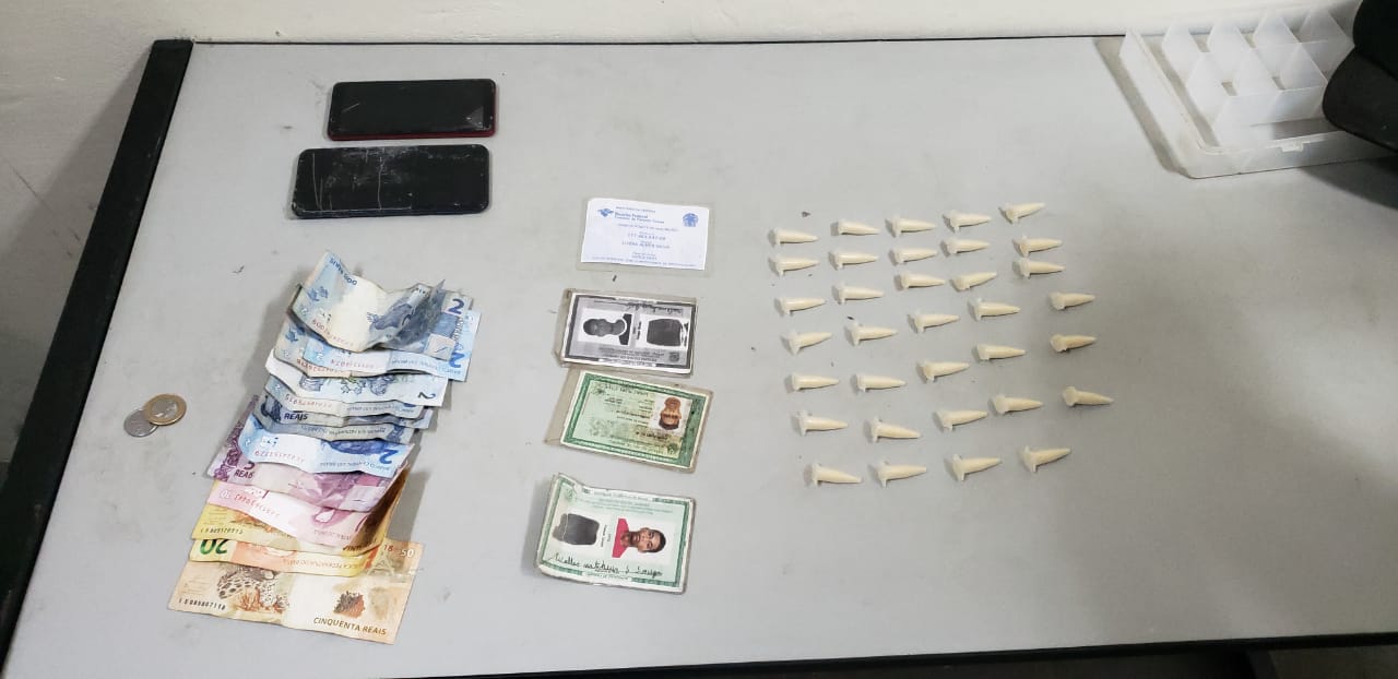 Chegando, os policiais avistaram os quatro em atitude suspeita e, ao avistar a viatura, eles correram. Porém, foram alcançados pelos agentes. Com eles, foram apreendidos 34 pinos de cocaína e R$ 123 em espécie.