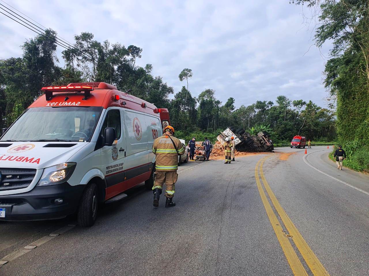 Um acidente na manhã desta segunda-feira (22) deixou quatro pessoas ficaram feridas na BR-101 (Rio-Santos), em Paraty. O acidente envolveu um caminhão que transportava lajotas, que tombou, e um carro de passeio.