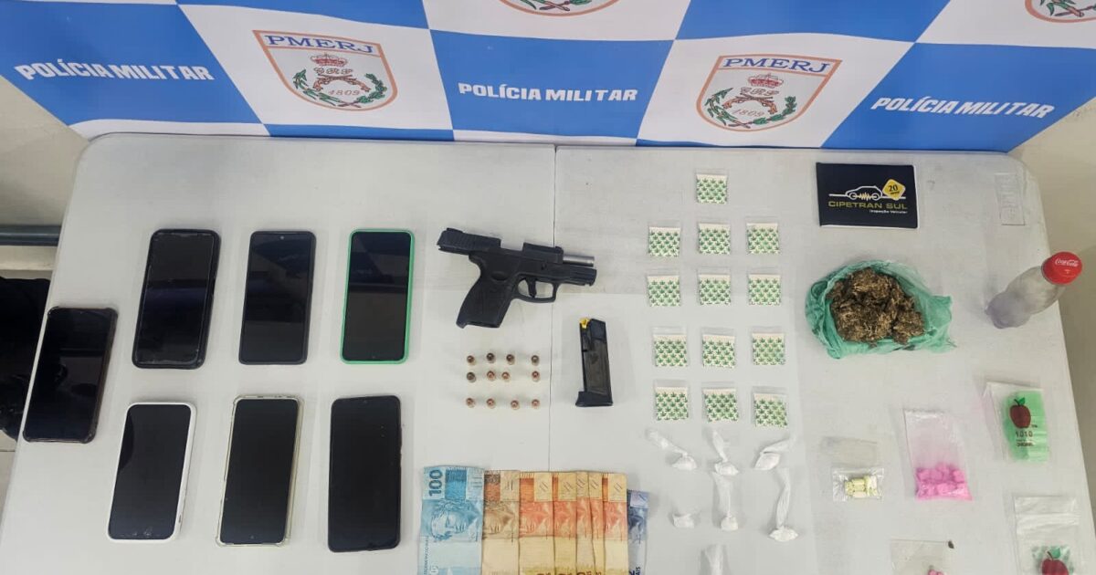 Uma ação da Polícia Militar resultou na apreensão de arma de fogo, drogas, dinheiro e diversos materiais ligados ao tráfico de entorpecentes na tarde desta terça-feira (23), no bairro Niterói, em Volta Redonda. A ocorrência teve início por volta das 13h30. Quatro suspeitos de tráfico foram...