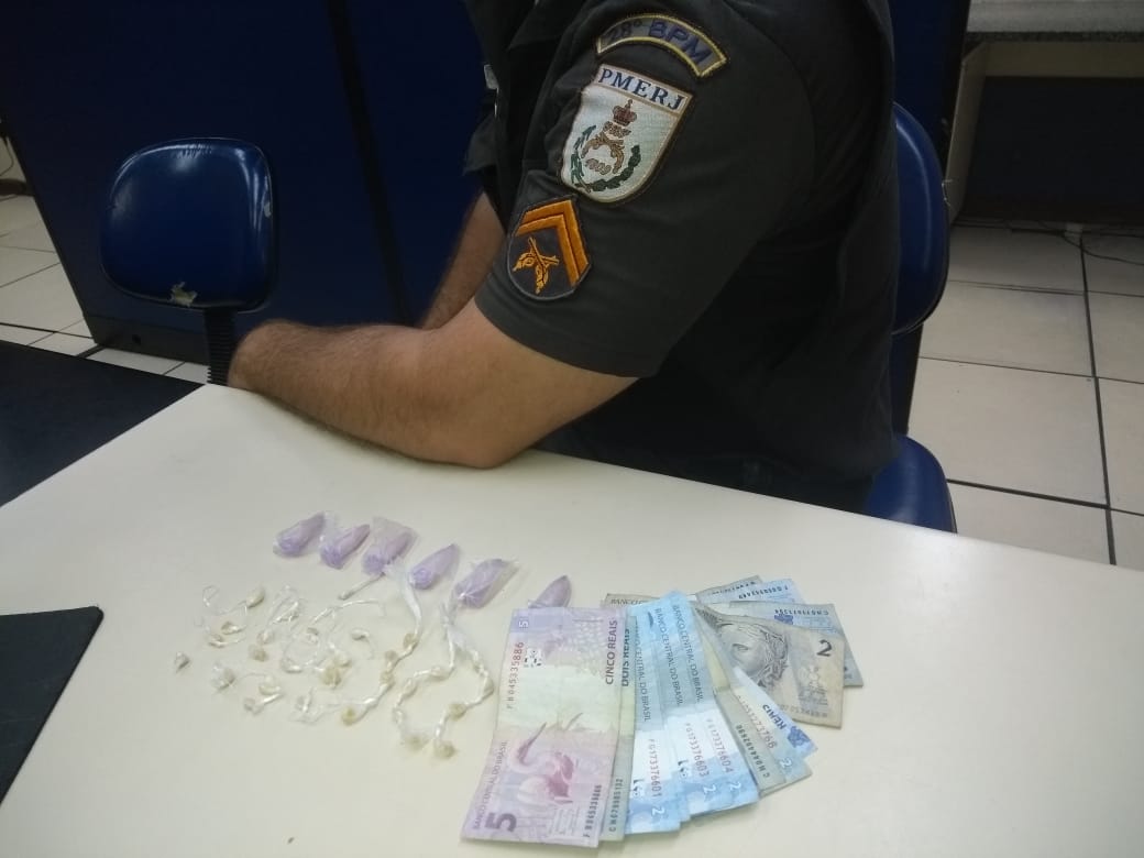 Com ele foram apreendidas 28 pedras de crack, cápsulas de cocaína e uma quantia em dinheiro.