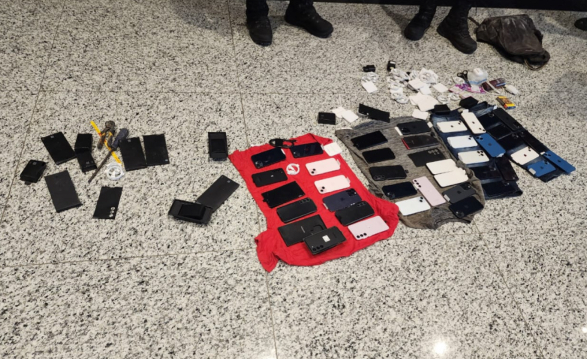 Com ele, foram apreendidos 39 telefones celulares, 14 chips de operadoras, 11 tomadas e dois fones de ouvido. Segundo a corporação, o prejuízo evitado foi estimado em R$ 350 mil.
