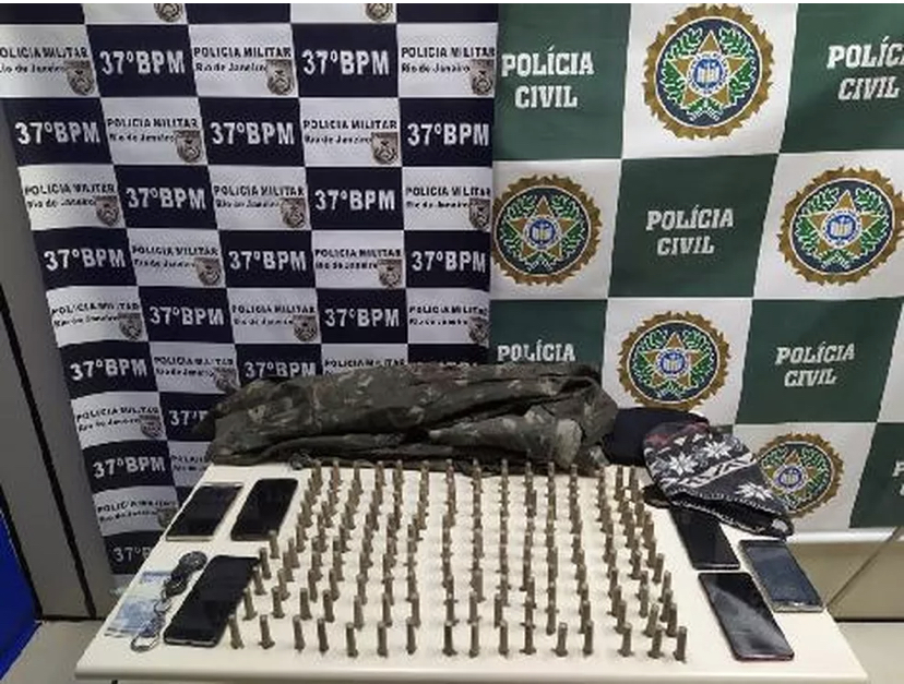 Durante o cumprimento dos mandados, foram apreendidas 185 cápsulas de cocaína, roupas camufladas, celulares e o veículo utilizado no crime.