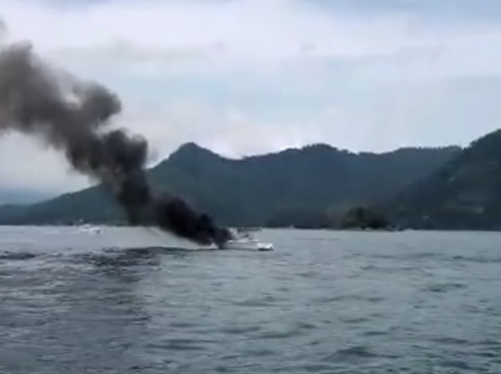 Uma embarcação, com o nome “Boia da Capitania”, pegou fogo na tarde deste domingo (6) em