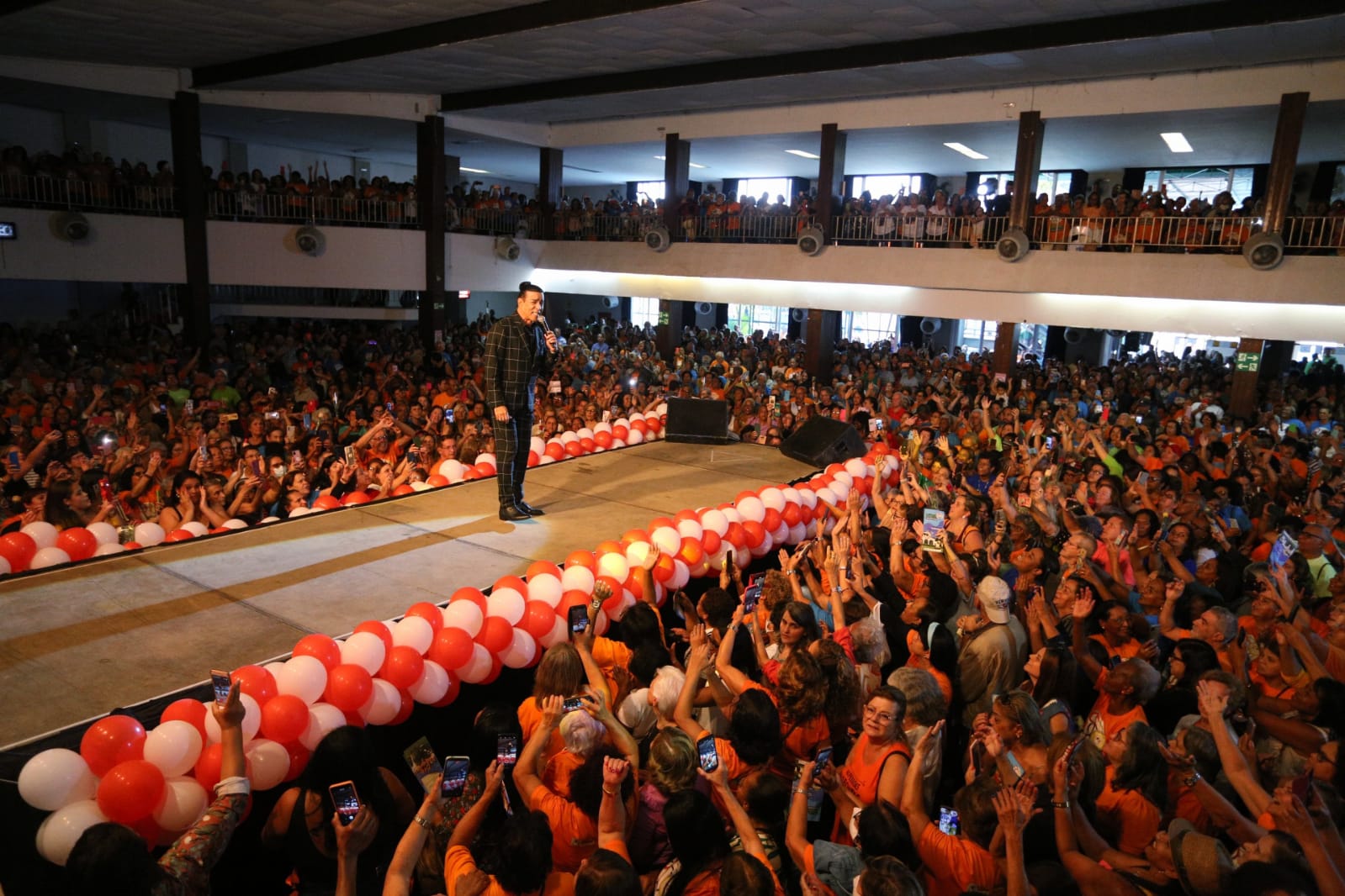 Parte dos dez mil idosos que vão participar da edição 2023 da “Viagem da Terceira Idade” lotaram o show do cantor Elymar Santos em homenagem ao Dia das Mães na tarde desta sexta-feira, 12, na Associação Atlética Comercial, no bairro Colina. O evento marcou a apresentação do roteiro preparado pela Prefeitura de Volta Redonda para o passeio na cidade mineira de Caxambu.