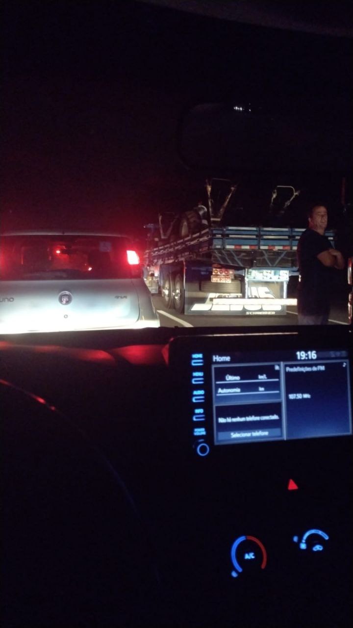 O veículo ficou atravessado fechando as duas pistas no sentido Rio de Janeiro. Segundo informações da concessionária que administra rodovia, o engarrafamento chega a dez quilômetros (as 22h35). A rodovia está fechada há mais de duas horas.