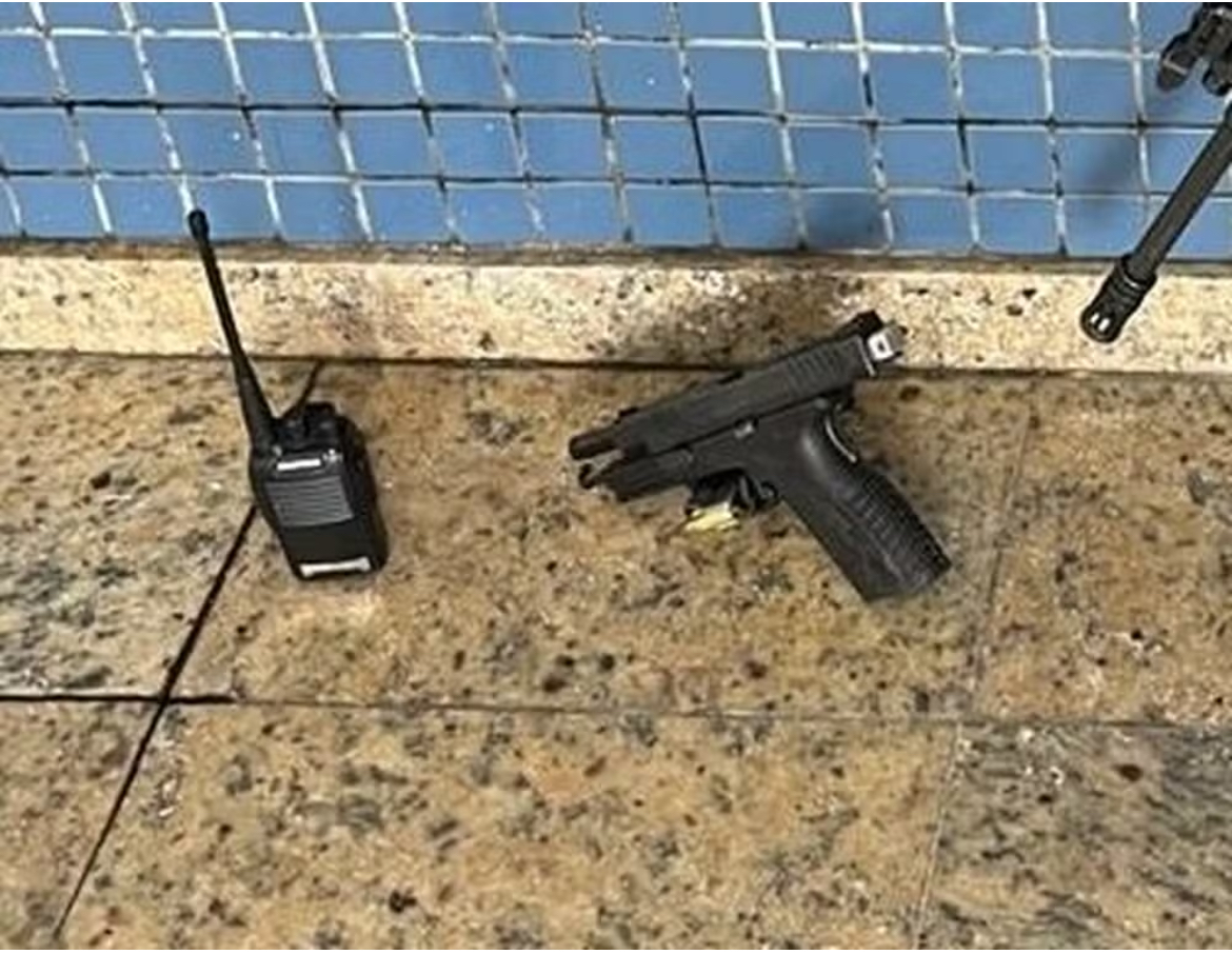 Com ele, foram apreendidos uma pistola calibre nove milímetros e um rádio de comunicação.