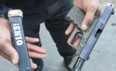 Ainda de acordo com a PM, uma pistola e drogas foram apreendidas na cena do crime.