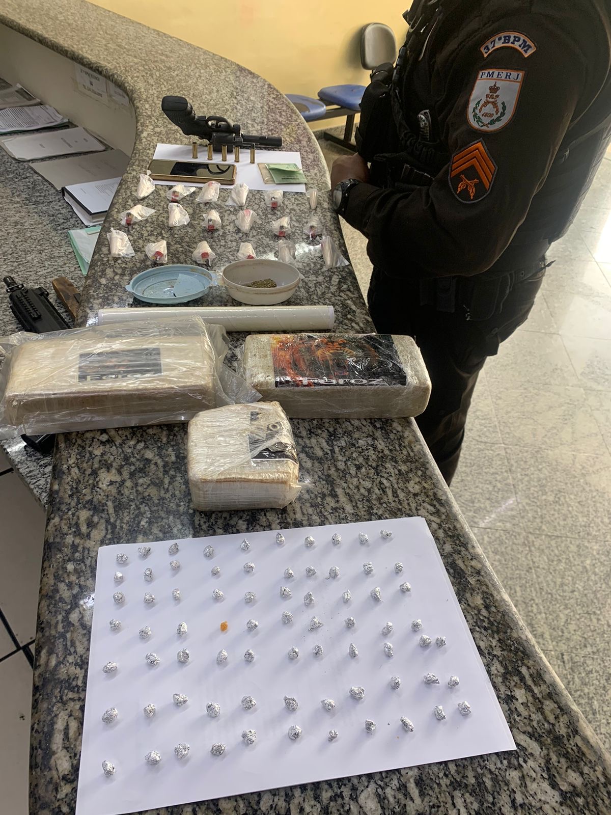 Uma ação da Polícia Militar resultou na prisão de um traficante em Quatis. O caso ocorreu nesta sexta-feira (12) na Rua Georgette Barbosa Leite, no bairro Jardim Independência. Os policiais militares foram ao local após uma denúncia de disparo de arma de fogo e indicando o autor.