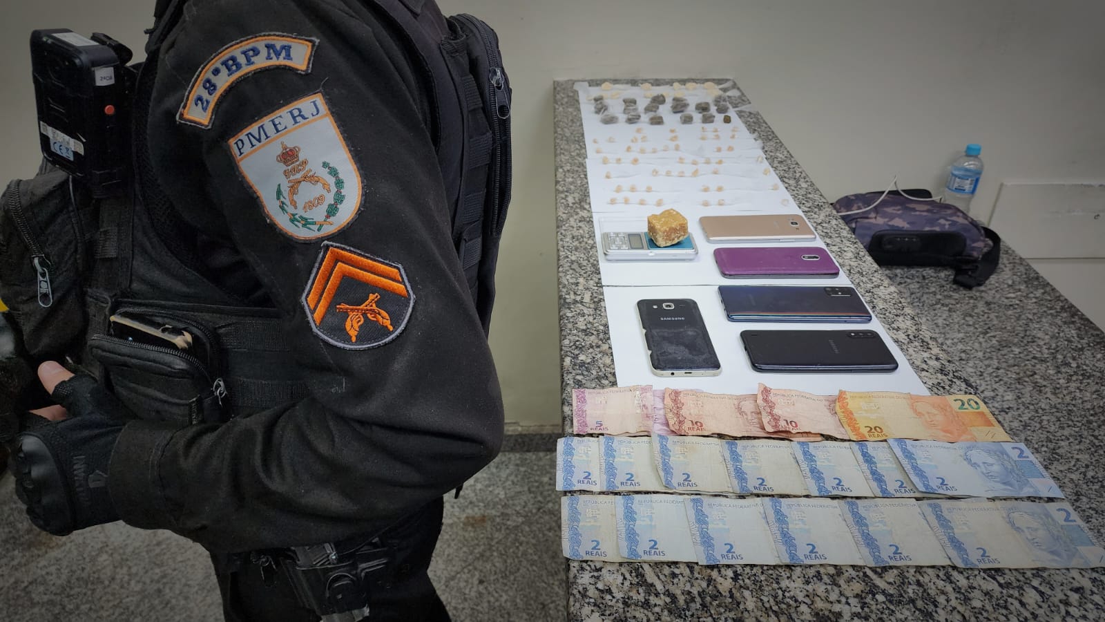 Em revista ao suspeito, foram apreendidos 50 pedras de crack, 17 de maconha e nove de cocaína, além de R$ 76 em espécie, cinco celulares e uma balança de precisão. Todo material, os dois homens e as drogas foram levados para a delegacia de Barra Mansa (90º DP), onde o caso foi registrado.
