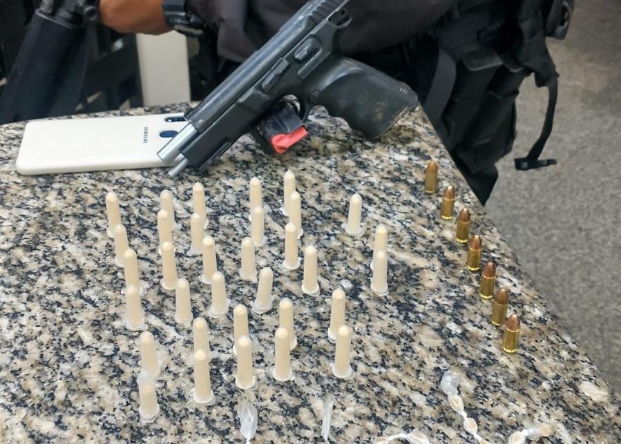 Os policiais militares estavam em ronda de rotina e avistaram o rapaz. Assustado, ele mesmo se entregou dizendo “perdi”. Na revista pessoal, foram encontrados uma pistola 9 mm com sete munições.