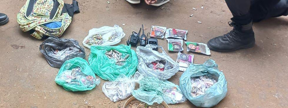 Chegando, eles fizeram o cerco tático até comprovar a veracidade da denúncia. No momento certo, eles abordaram o homem. Com ele, foram apreendidos 100 pinos de cocaína, 51 maconha, 16 cigarros com crack, 12 frascos Black lança, um rádio transmissor e uma base de carregador.